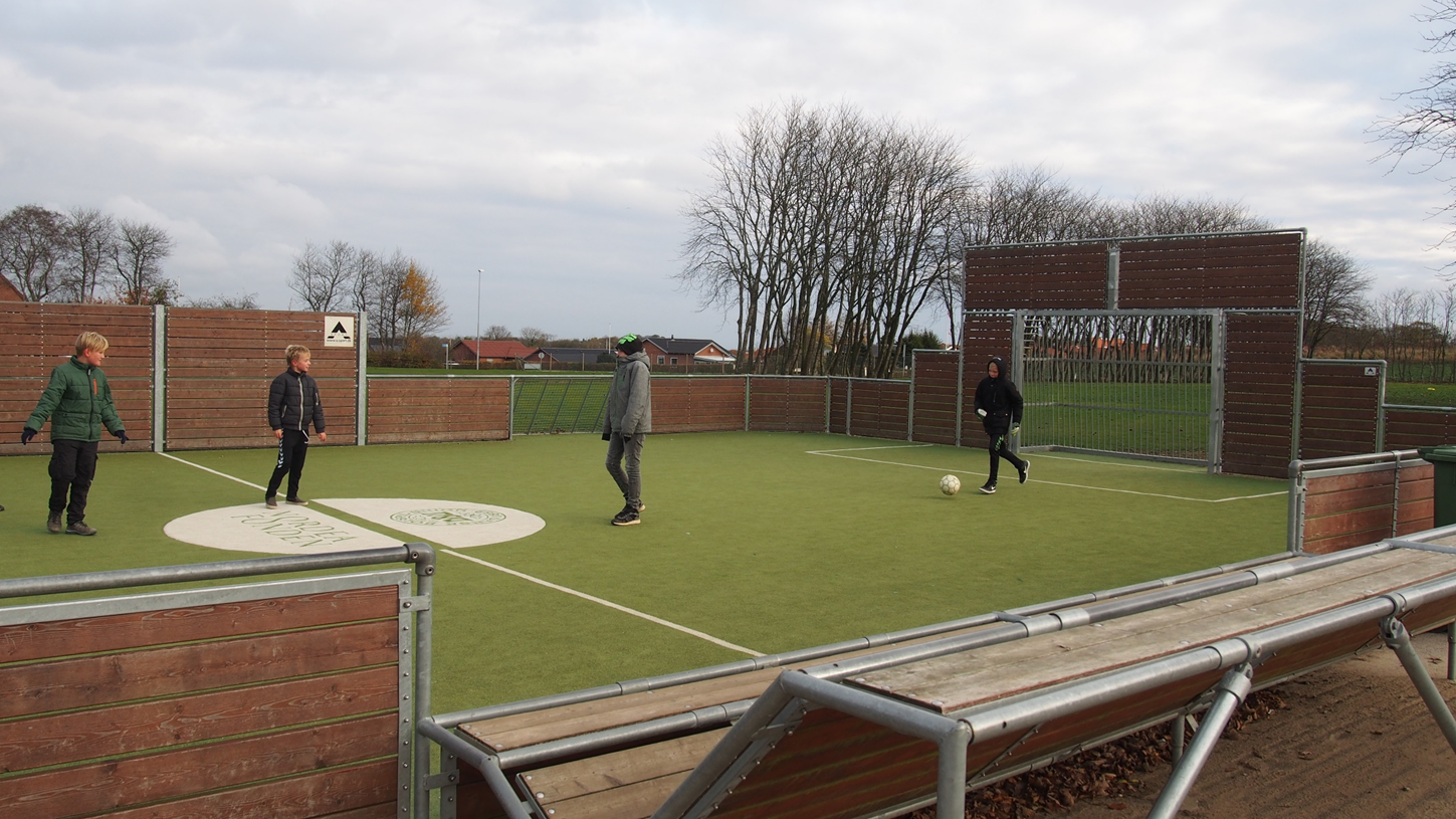 Blandt elementerne er også en multibane, en panna-boldbane og siddefaciliteter. Pladsen er oplyst.